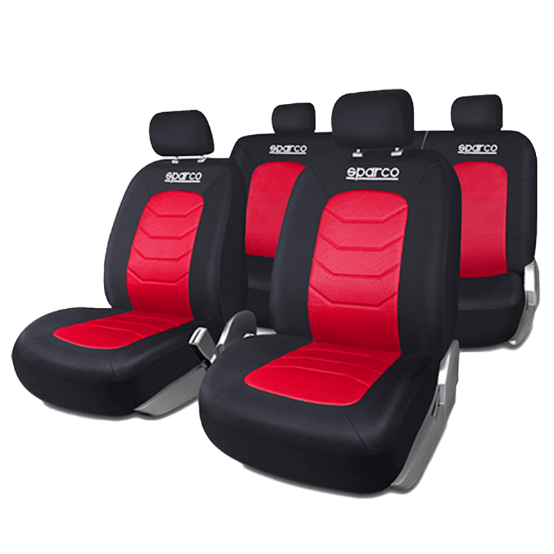 Encuentra este impresionante juego de fundas para asientos de la marca Sparco, alta calidad y diseño vistoso, siempre al mejor precio en Repuestos Maydek.